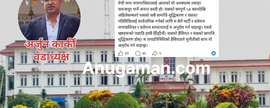मेचीनगर । झापा मेचीनगर नगरपालिका-४ का वडाध्यक्ष अर्जुन कार्कीले मेचीनगरका वरिष्ठ प्रशासकीय अधिकृत अनन्त वस्तीमाथि गम्भीर आरोप लगाए