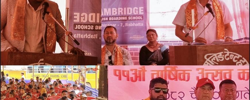 इटाभट्टा । ११ वर्ष पूरा गरेको अवसर पारेर झापाको मेचीनगर-७ स्थित क्याम्ब्रिज अङ्ग्रेजी बोर्डिङ स्कुलले सोमबार बार्षिकोत्सब मनाएको छ । सस